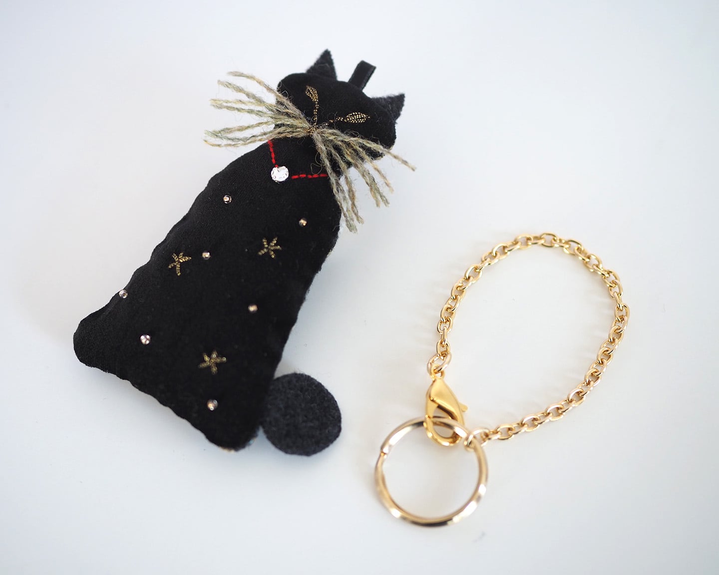 ワークショップ6回目の今回は、クロネコのオーナメントを作ります。バッグチャームのパーツもセットにしていますので、チャームとしてもお使い頂けます。
