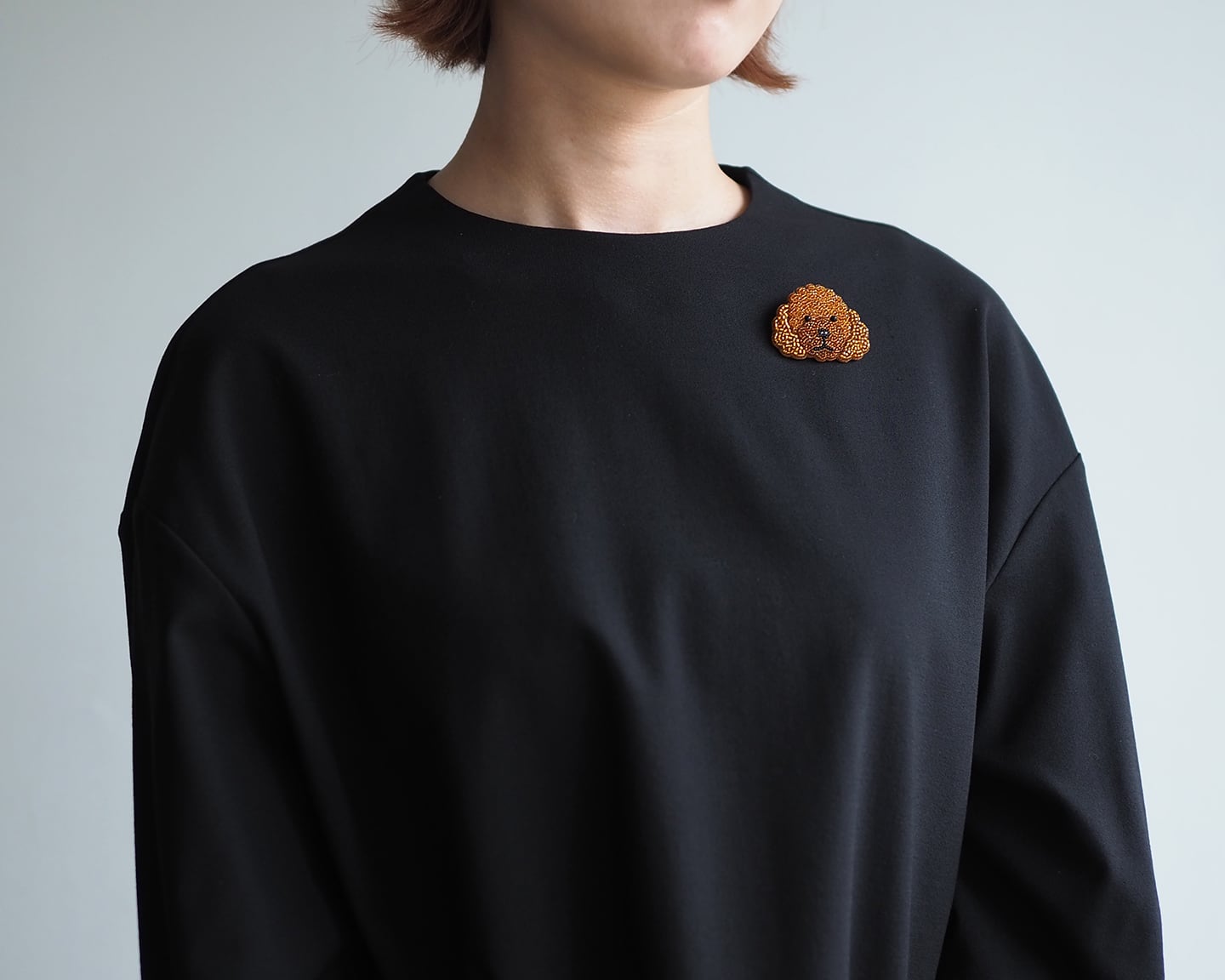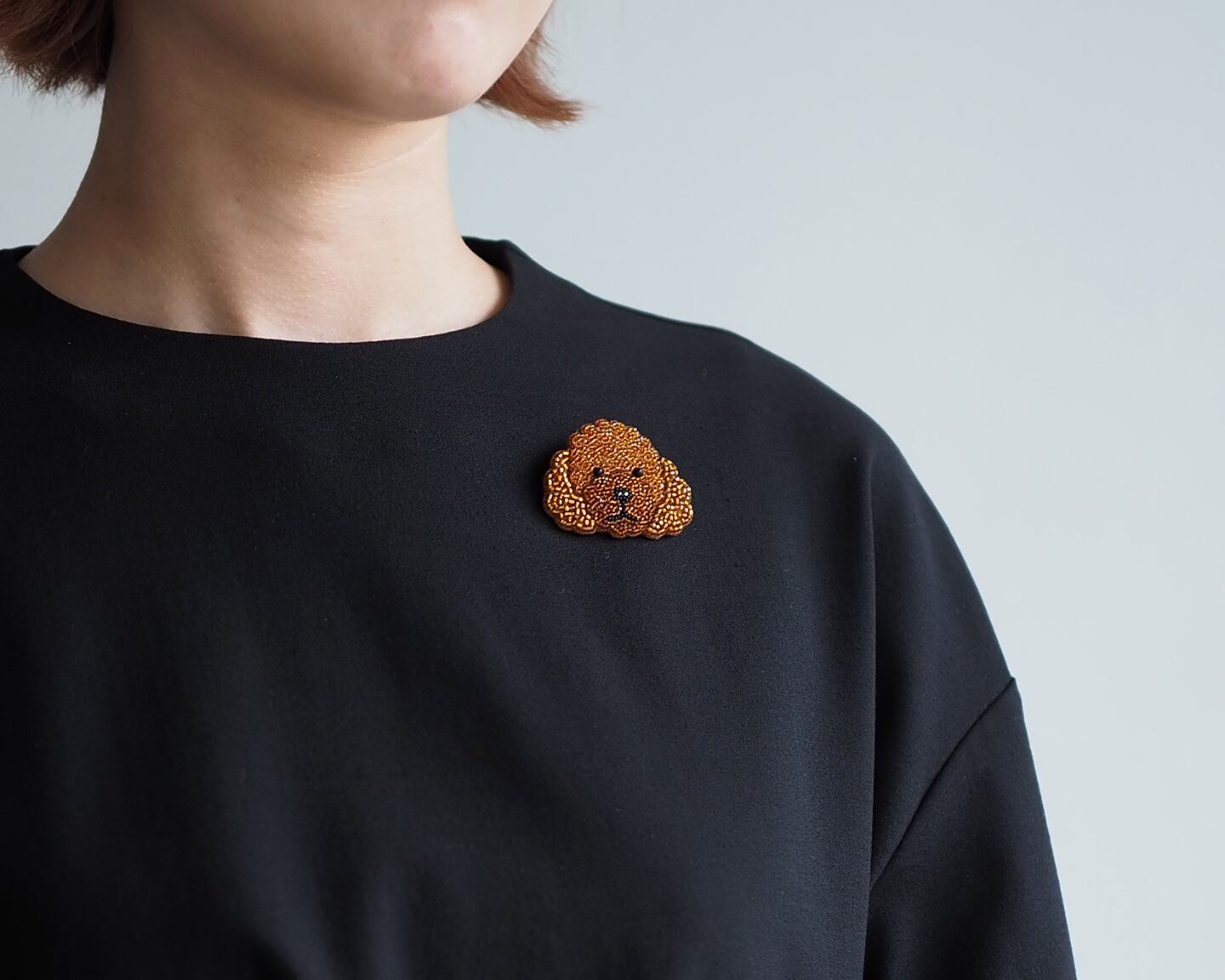 トイプードルは、ブラックオニキスで刺繍したつぶらな瞳がかわいいです。