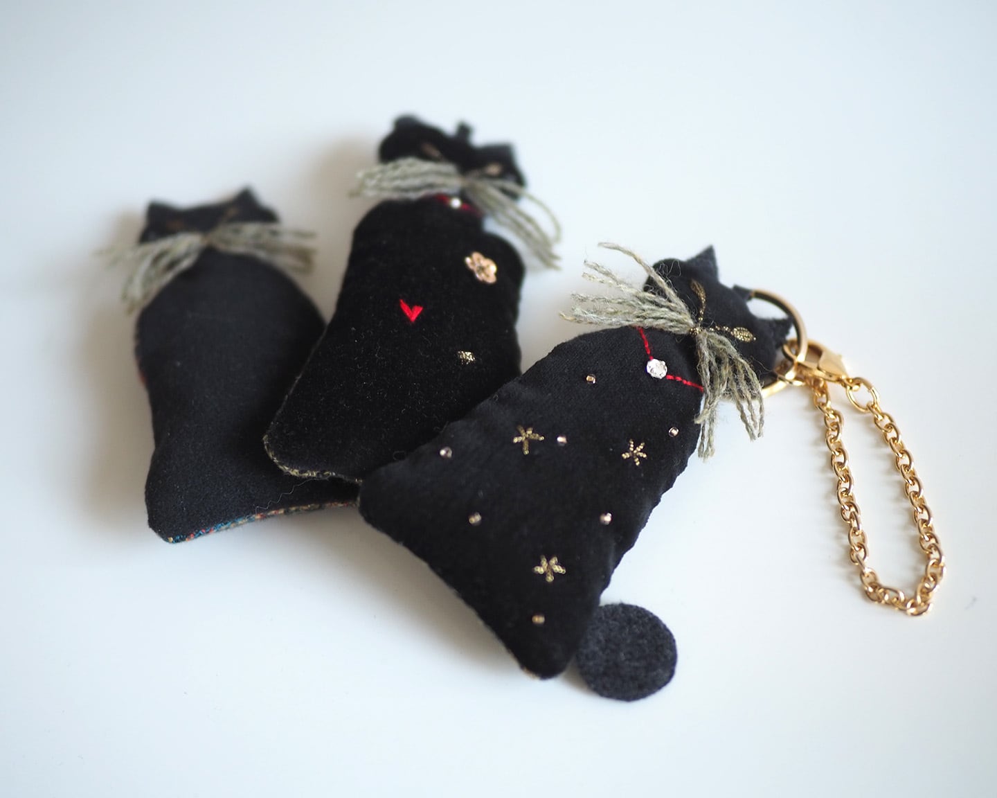 ワークショップ6回目の今回は、クロネコのオーナメントを作ります。バッグチャームのパーツもセットにしていますので、チャームとしてもお使い頂けます。